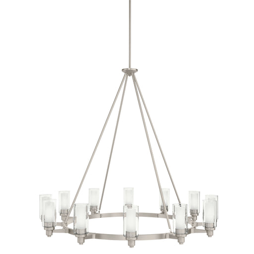 The Circolo 41" 12 light round chandelier features a Brushed Nickel finish and clear outer and satin etched inner glass cylinders for a classic loo...