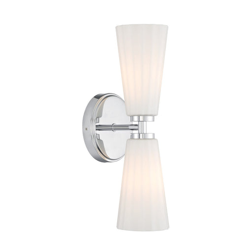 Timelessly beautiful and elegant, this 2-light sconce is sure to brighten your home in style. Its alluring white fluted glass shades add a thoughtf...