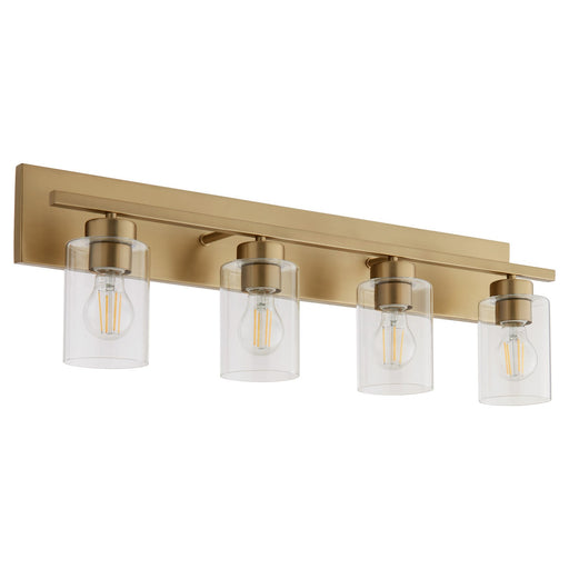 View full detailsQuorum 501-4-280 Four Light Vanity, Aged Brass w/ Clear Fluted Glass
