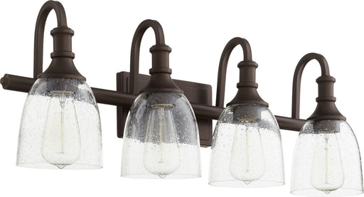 View full detailsQuorum 5011-4-186 Four Light Vanity, Oiled Bronze w/ Clear/Seeded