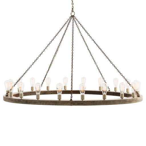 This 20-light chandelier is the largest version in the Geoffrey Collection. Hanging by a purposely rusted chain the large gray wood ring makes an i...