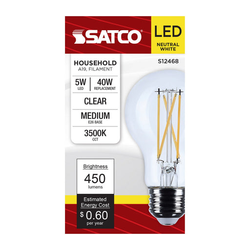 Satco's 5-watt, A19 LED bulb with a medium base is dimmable and offers warm white light with a 300 degree beam spread. Elegant and long-lasting, th...