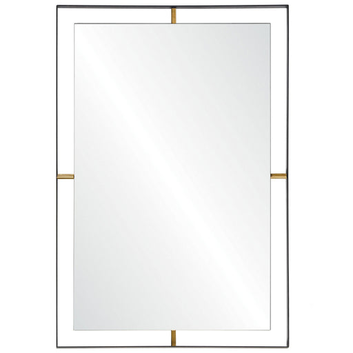 Industrial revolution. With antique gold supports, this mirror appears to float on your wall. The outer frame is matte black iron for an industrial...