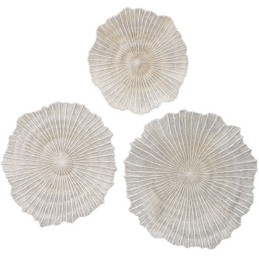 A Captivating Trio Of Sculpted Resin Wall Decor In A Warm Silver Leaf Finish. The Undulating Forms Create A Fluid Motif, Reminiscent Of Ripples In ...