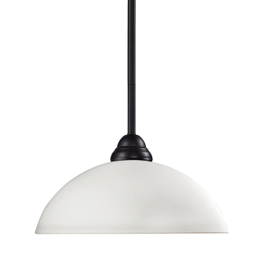 Elegant and traditional best describes this beautiful mini pendant fixture. Finished in bronze and paired with matte opal shades, this one light fi...