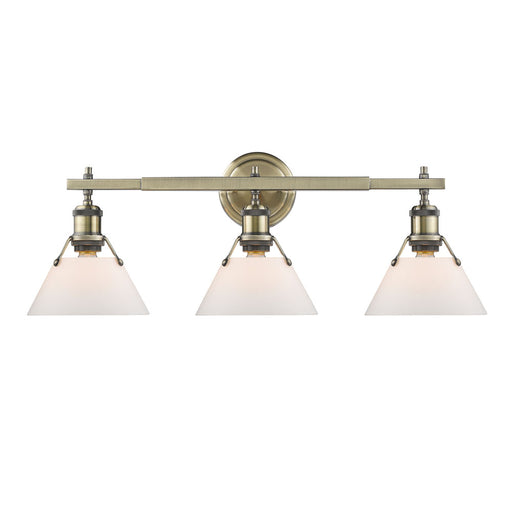 View full detailsGolden 3306-BA3 AB-OP Three Light Bath Vanity, Aged Brass