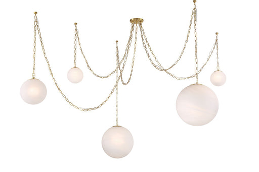 Details:Product Type: Multi-Port/CascadeFinish: Legacy BrassShade: WhiteMeasurements:Width / Dia: 84.50"Height: 18.50"Length: 84.50"Canopy: 6"x1"We...