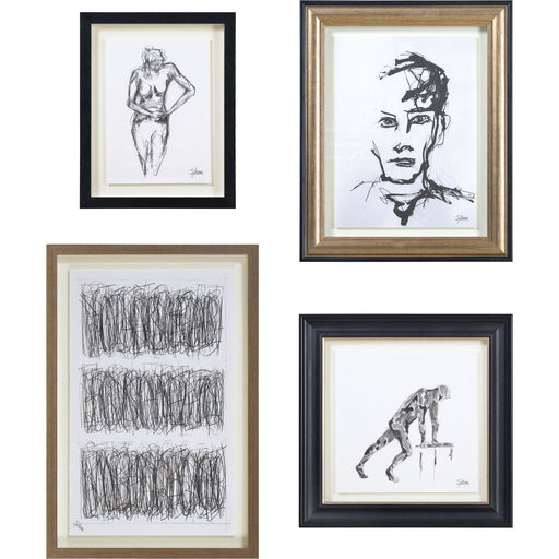 These three wall art pieces envelop the contemporary interior with the captivating beauty of a portrait. Set against rag paper, the royal blue back...