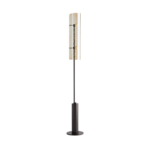 The freestanding Bend Floor Lamp casts dynamic patterned light through a long, narrow half-cylinder of rippled amber glass. A celebration of the su...