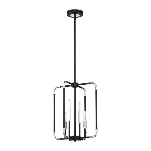 Open frame of mixed metals in black and chromeDetails:Product Type: 4 Light +Finish: Chrome/BlackShade: CrystalMeasurements:Width / Dia: 10.00"Heig...