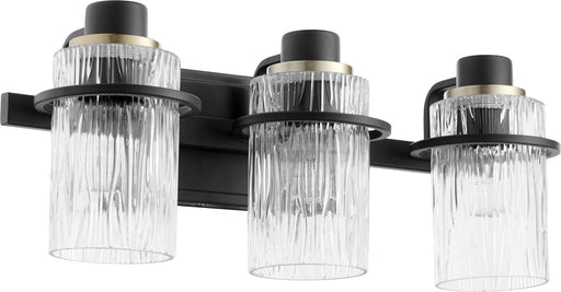 View full detailsQuorum 529-3-6980 Three Light Vanity, Textured Black w/ Aged Brass