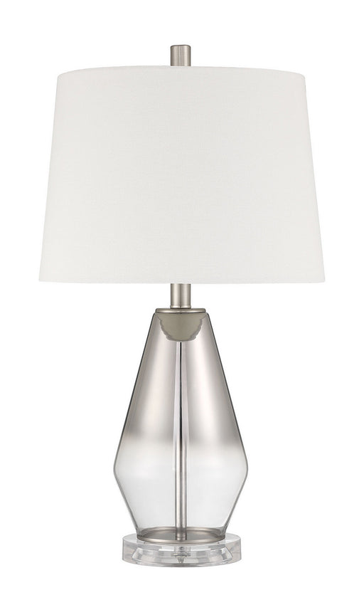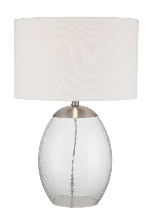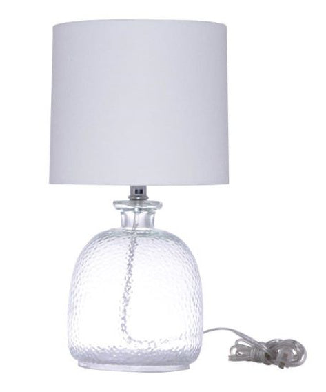 The classis styling of this table lamp combines an clear glass body with brushed nickel base and finial. Included white linen 10.43" H x 14.96" W d...