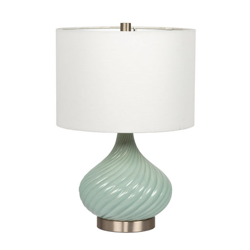 Chalk Blue Ceramic Table Lamp w/White Hard Back ShadeDetails:Product Type: Drum Shades/TableFinish: Chalk Blue Brushed Polished NickelShade: Off-Wh...