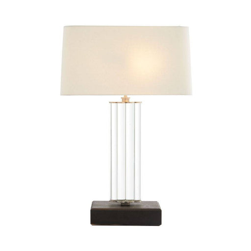 There is strength in simplicity. The clear glass rods are capped in pewter and grouped together to form a collumnar lamp with an ebony oak base. Th...