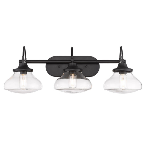 View full detailsGolden 3419-BA3 BLK-CLR Three Light Bath Vanity, Matte Black
