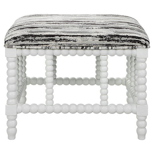 Sophisticated With A Touch Of Whimsy, This Accent Stool Features A Cushioned Seat Upholstered In A Contemporary Black And White Embroidered Fabric,...