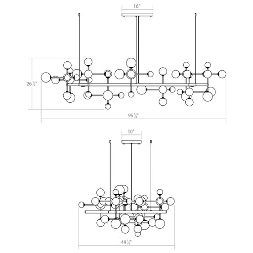 Details:Product Type: 4 Light +Finish: Satin BlackShade: Clear Glass w/Etched Acrylic ConeDesigner: SONNEMANMeasurements:Width / Dia: 96.25"Height:...