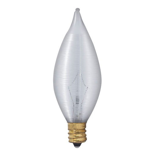 Flame - Candelabra Base: CA5, CA7, CA8Details:Product Type: Flame TipFinish: FrostMeasurements:Width / Dia: 0.59"Height: 0.90"Length: 2.88"Weight: ...