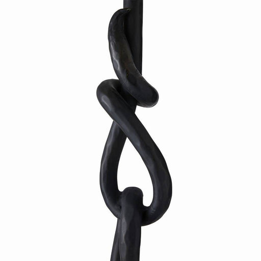 Dual rods of hammered, blackened iron twist, turn, and knot to form the base of this linework-inspired lamp. A tabletop-sized take on our dramatic ...
