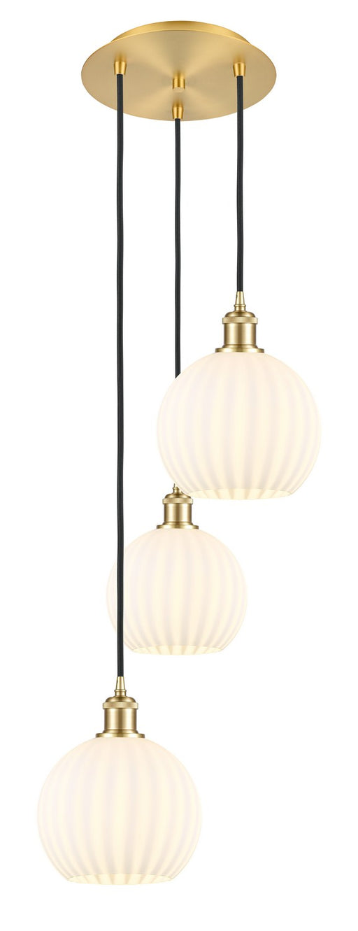 Ellery - 3 Light - 12 inch - Satin Gold - White Shade - Cord Hung - Multi PendantDetails:Product Type: 3 Light ClusterFinish: Satin GoldShade: Whit...