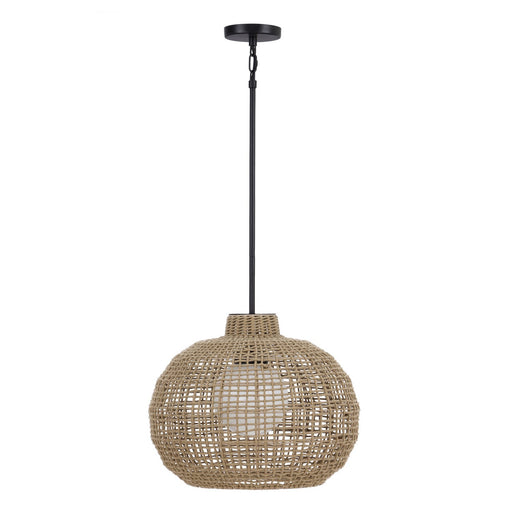 Details:Product Type: LampsFinish: BlackShade: Round Brown RopeRooms: PatioMeasurements:Width / Dia: 16.25"Height: 22.25"Length: 16.25"Wire: 132"Ca...