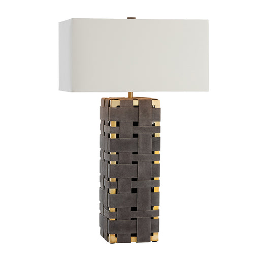 The artisanal weave of our Elis Bench is refashioned as a table lamp interlacing gray suede over a minimal solid brass frame. A combination of eque...