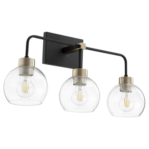 View full detailsQuorum 532-3-6980 Three Light Vanity, Textured Black w/ Aged Brass
