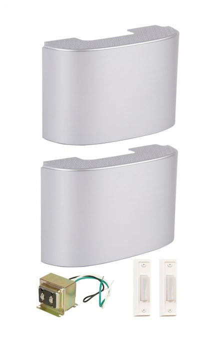 CK1002-W White Chime Kit with 2 chime, 2 white buttons TransitionalDetails:Product Type: Door ChimesFinish: WhiteMeasurements:Width / Dia: 7.79"Hei...