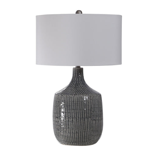 This Ceramic Base Keeps It Simple In Shape, Yet Upscale With Its Fashionable Pattern That's Finished In A Distressed Blue-gray Glaze, Paired With B...
