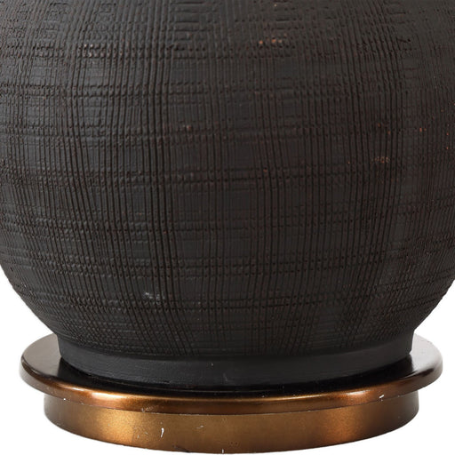 This Ceramic Base Features A Textured, Matte Black Hand-scored Body, Accented With A Metallic Golden Bronze Glazed Neck, Paired With Antique Brass ...