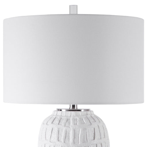 A Modern Take On Old World Style, This Table Lamp Features A Textured, Aged White Ceramic Base With An Organic Grid Design Displayed On A Thick Cry...