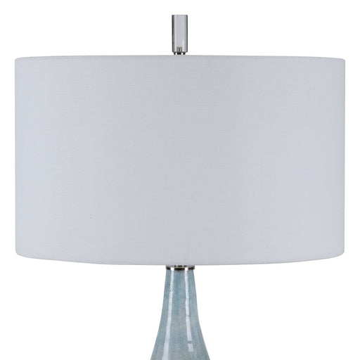 Showcasing A Refined Coastal Style, This Table Lamp Has A Ceramic Base Finished In An Aqua And Teal Crackle Glaze With Touches Of Rust Brown. Polis...