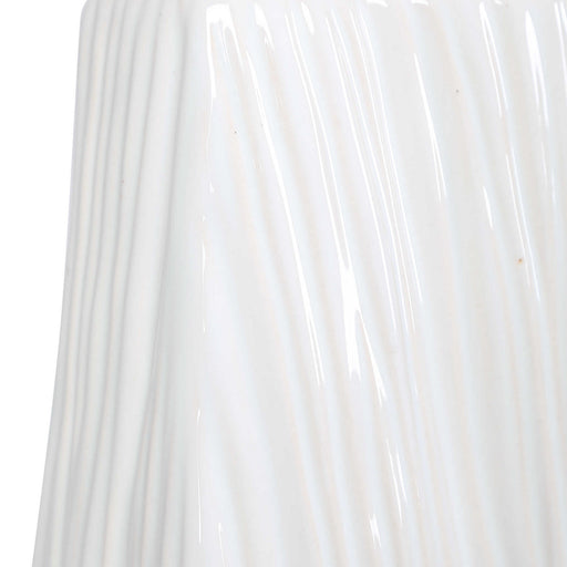 This Ceramic Table Lamp Showcases A Touch Of Mid-century Style With A Dimensional Geometric Design Finished In A Glossy White Glaze, Accented With ...