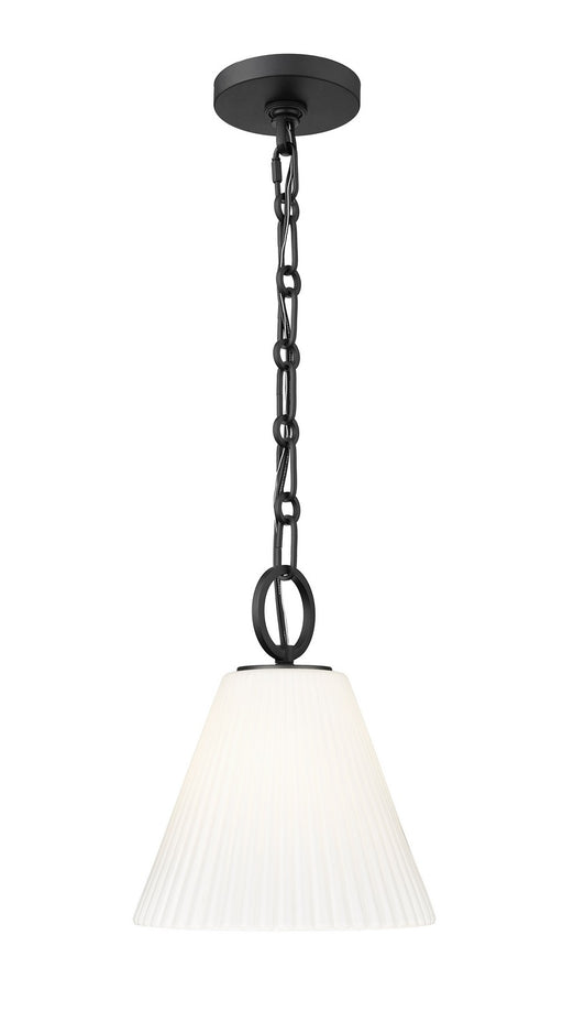 Chic in matte black, this modern one-light pendant is a beautiful choice alone or in series. It showcases a delicately fluted, conical glass diffus...