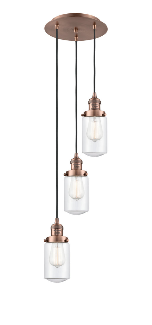 Dover - 3 Light - 11 inch - Antique Copper - Clear Shade - Cord hung - Multi PendantDetails:Product Type: 3 Light ClusterFinish: Antique CopperShad...