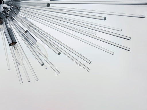 A dazzling burst of Clear glass rods extend from a classic sputnik shape finished in a bright Polished Chrome or warm Satin Brass. Available in two...