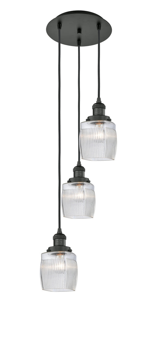 Colton - 3 Light - 12 inch - Matte Black - Clear Halophane Shade - Cord hung - Multi PendantDetails:Product Type: 3 Light ClusterFinish: Matte Blac...