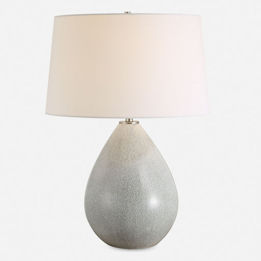 This Ceramic Table Lamp Features A White Glaze Finish With A Dripped Gray Texture, Paired With Plated Brushed Nickel Accents. The Slightly Tapered ...