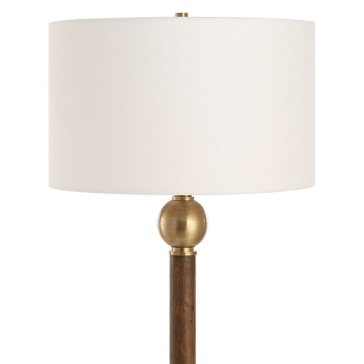 Infusing Your Space With Rustic Charm And A Hint Of Sophistication, The Keros Floor Lamp Features A Dark Oak Wood Base Paired With Brass Plated Det...