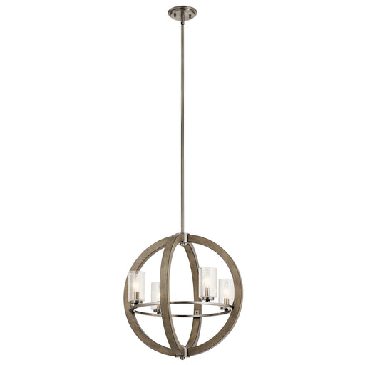 View full detailsKichler 43185DAG Four Light Chandelier, Distressed Antique Gray