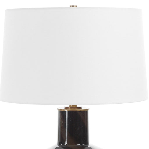 The Buchanan Table Lamp Showcases A Smokey Charcoal Glass, Accented With Plated Brass Details That Conveys A Sense Of Opulence. The Slightly Tapere...