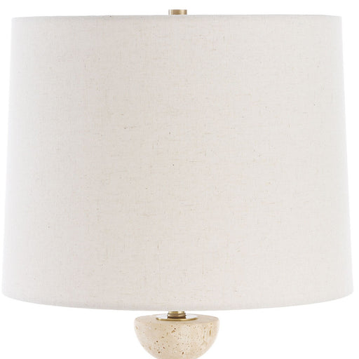 Featuring A Distinctive Dark Bronze Iron Base Paired With A Contrasting Travertine Stone Ornament, The Procida Table Lamp Effortlessly Blends Sophi...