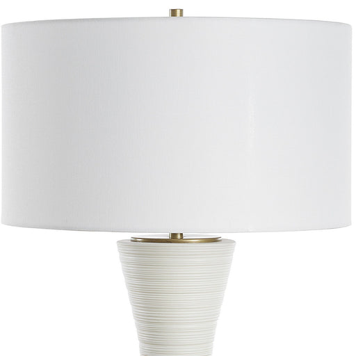 This Ceramic Table Lamp Boast A Warm White Matte Finish With Horizontal Ridge Lines, Adding A Touch Of Texture And Visual Interest To Sleek Curves,...