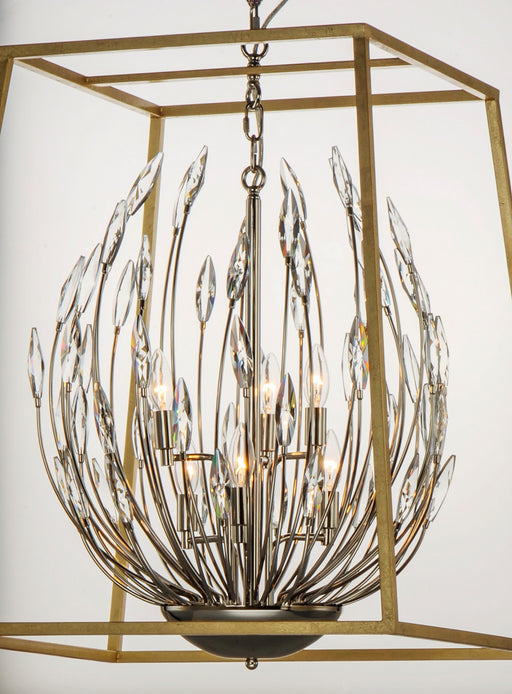 Metal frames finished in a lustrous Gold Leaf house a Polished Nickel bouquet of Beveled Crystal petals. The combination of gold, nickel, and cryst...