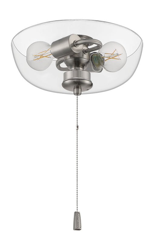 Universal 2 Light Clear Bowl Fan Light Kit is compatible with most fans.Details:Product Type: Light KitsFinish: Brushed Polished NickelShade: Clear...