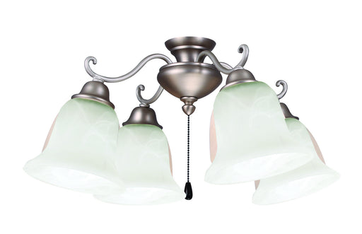 4 Light Universal Fan Light KitDetails:Product Type: Light KitsFinish: Brushed NickelShade: AlabasterMeasurements:Width / Dia: 19.00"Height: 7.75"L...