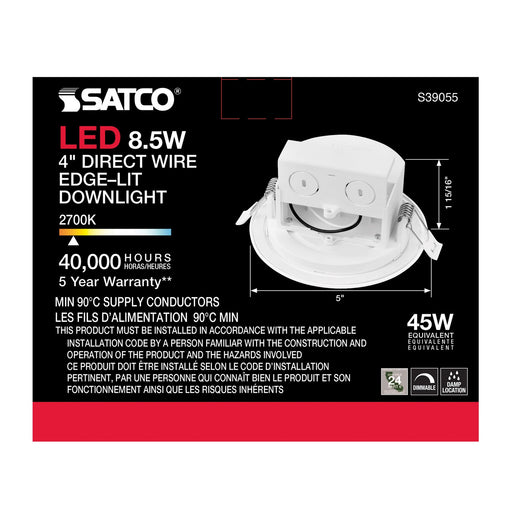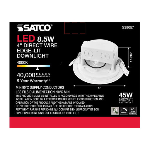 SATCO NUVO's 8.5-watt, LED 4 inch recessed fixture is edge lit. The direct wired downlight offers warm white light with a 100 degree beam spread. T...