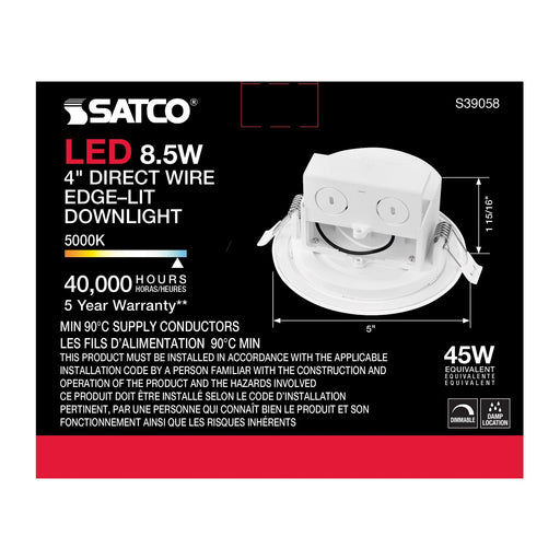SATCO NUVO's 8.5-watt, LED 4 inch recessed fixture is edge lit. The direct wired downlight offers natural light with a 100 degree beam spread. This...