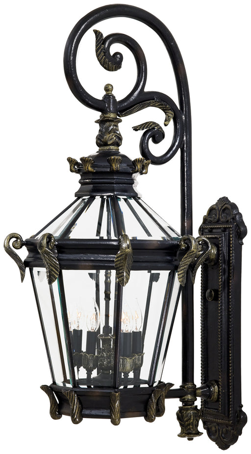 Clear beveled glass. Crafted from solid cast aluminum and appointed with ornate cast ornamentation.Details:Product Type: Wall MountFinish: Heritage...