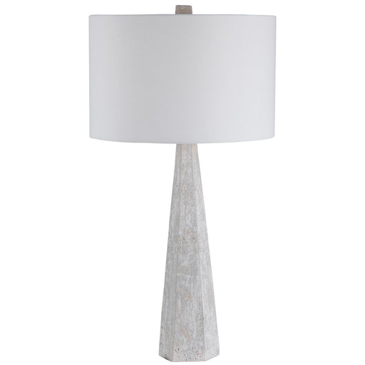 This Table Lamp Showcases A Tapered Base In A Concrete Look With Crisp Edges And Porous Texture Finished In Off-white, Light Gray, And Taupe Tones,...
